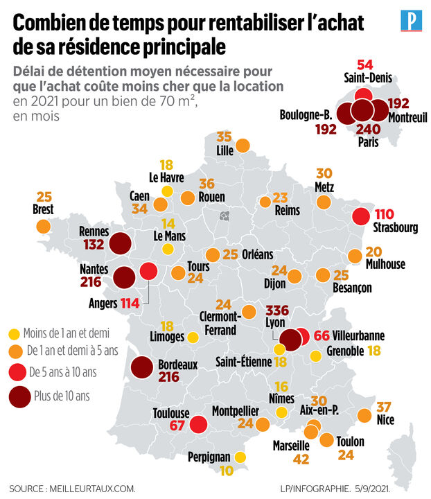 Rester locataire ou devenir propriétaire ? 58% des français sont propriétaires de leur logement. Et apparemment ils en sont heureux comme Magalie qui explique préférer rembourser sa banque 500 euros par mois plutôt que d’enrichir un propriétaire. 42info vous révèle quelles sont les villes où il vaut mieux acheter. Selon meilleurtaux.com, il faut 18 ans pour rentabiliser un bien immobilier à Saint-Etienne d’une surface de 70m2.