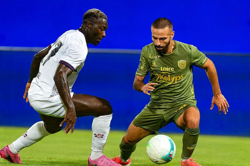 La rencontre a démarré de manière défavorable pour les hommes d’Eirik Horneland, contraints de subir l’initiative des Italiens durant les premières phases de jeu. La domination territoriale adverse s’est accompagnée d’un coup dur précoce avec la sortie sur blessure de Maxime Bernauer à la 12ème minute, touché musculairement et remplacé par Dennis Appiah. Cette substitution forcée a perturbé l’organisation défensive stéphanoise dans un moment où l’équipe cherchait encore ses marques face à un adversaire entreprenant.
