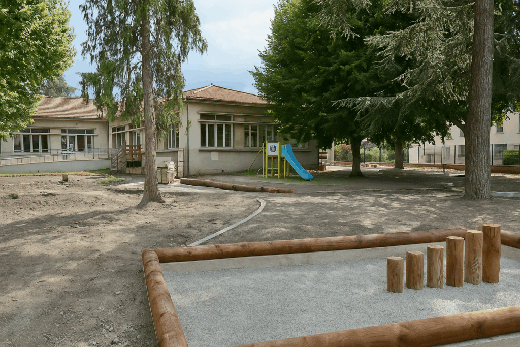 L’école du Châtelard représente le projet le plus ambitieux de cette période estivale. Après deux années consacrées à la réhabilitation des bâtiments, l’établissement bénéficie désormais d’une refonte intégrale de ses zones extérieures.