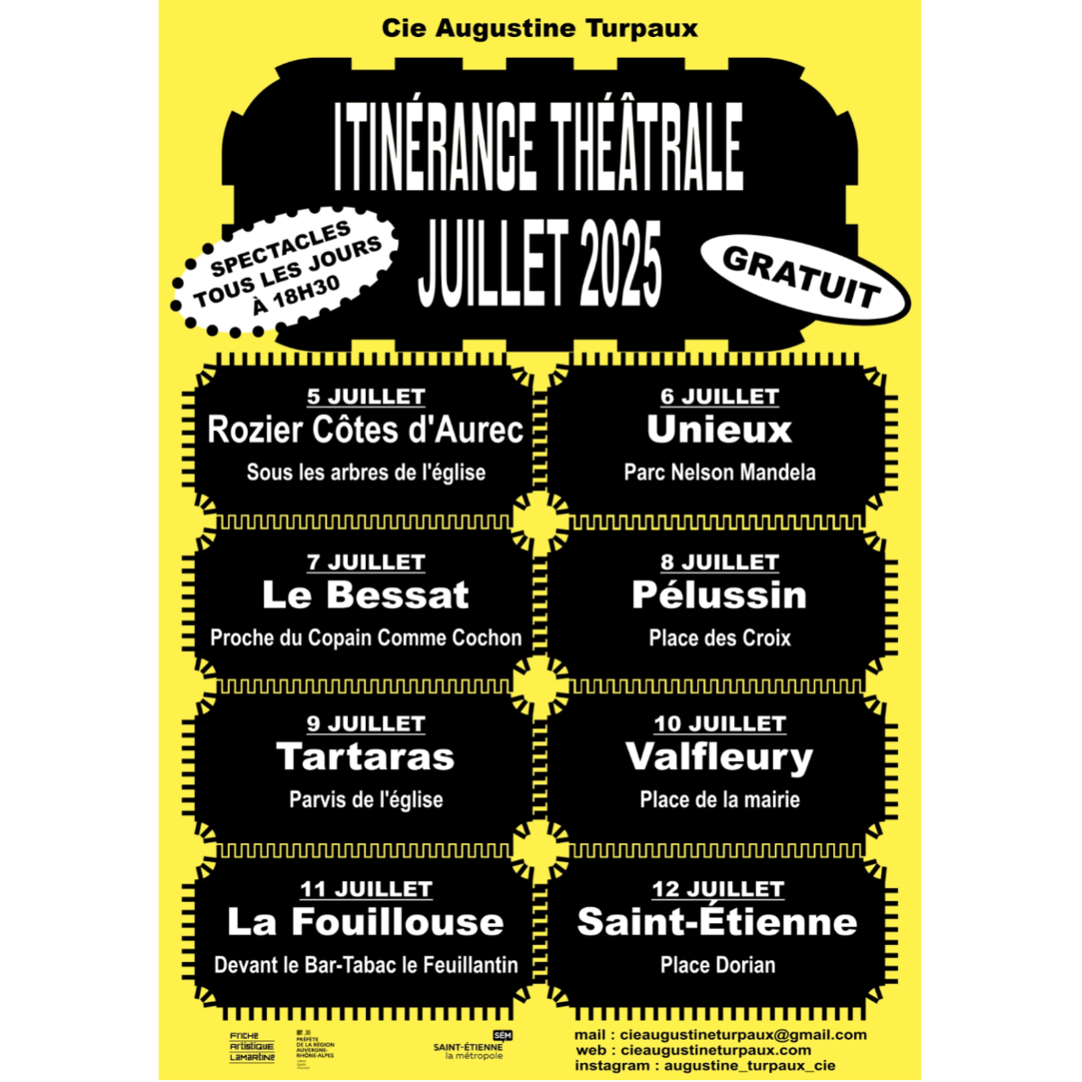 La spécificité de la Compagnie Augustine Turpaux réside dans sa capacité à créer des spectacles uniques pour chaque étape. Cette approche improvisée s’appuie sur l’observation du lieu et la rencontre avec les habitants pour nourrir la création artistique.